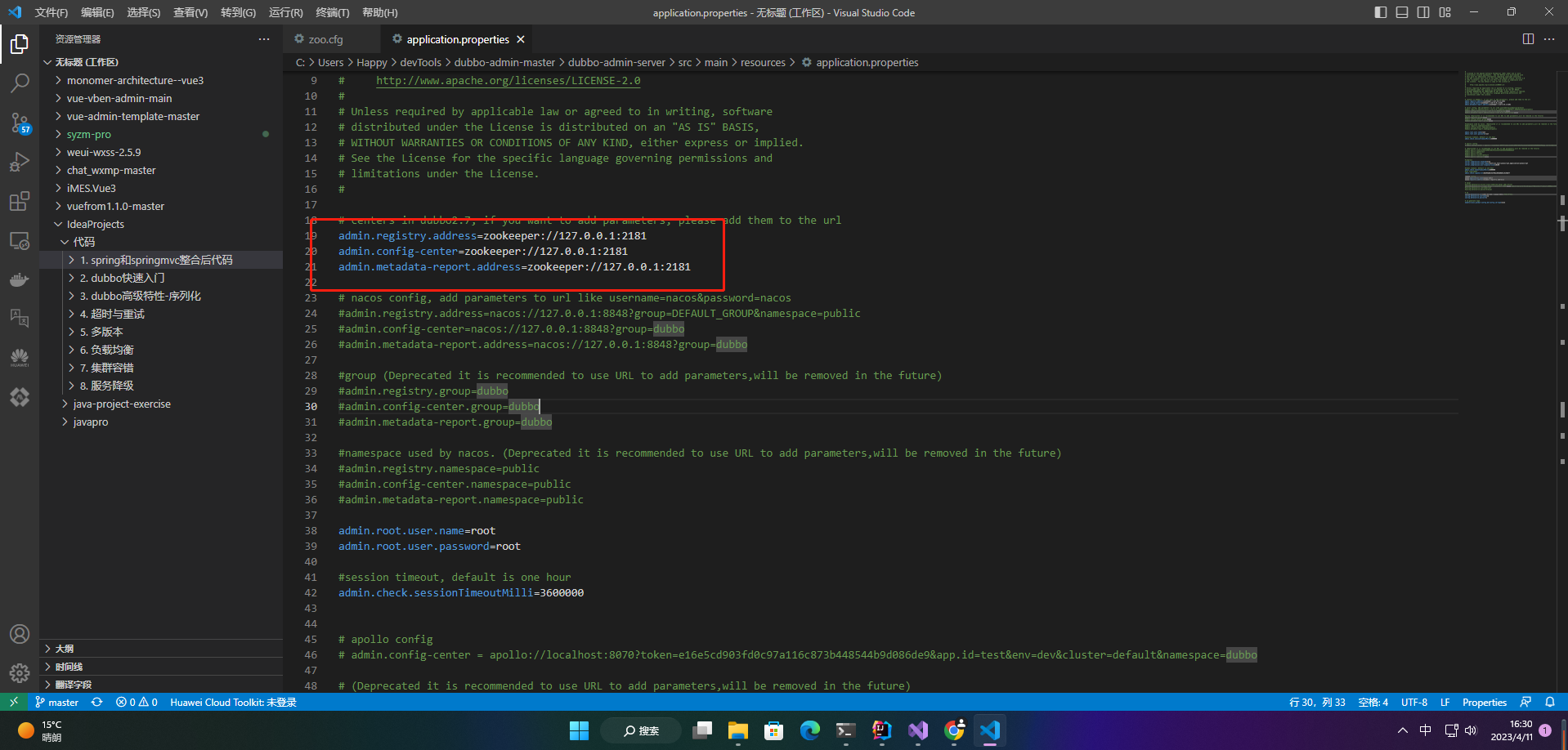 进入dubbo-admin\src\main\resources\application.properties 指定zookeeper地址