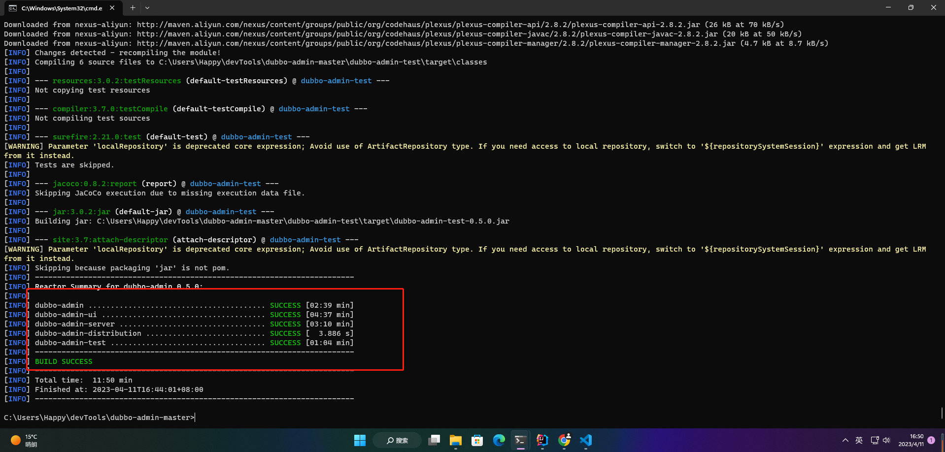 进入到解压dubbo的根目录下,进入命令行模式使用命令: mvn clean package -Dmaven.test.skip=true