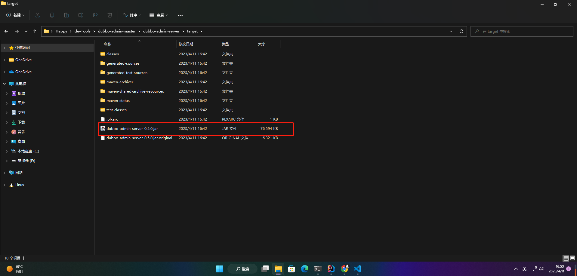 打包完成后会在dubbo-admin下生成一个target,里面有一个jar包,运行它: