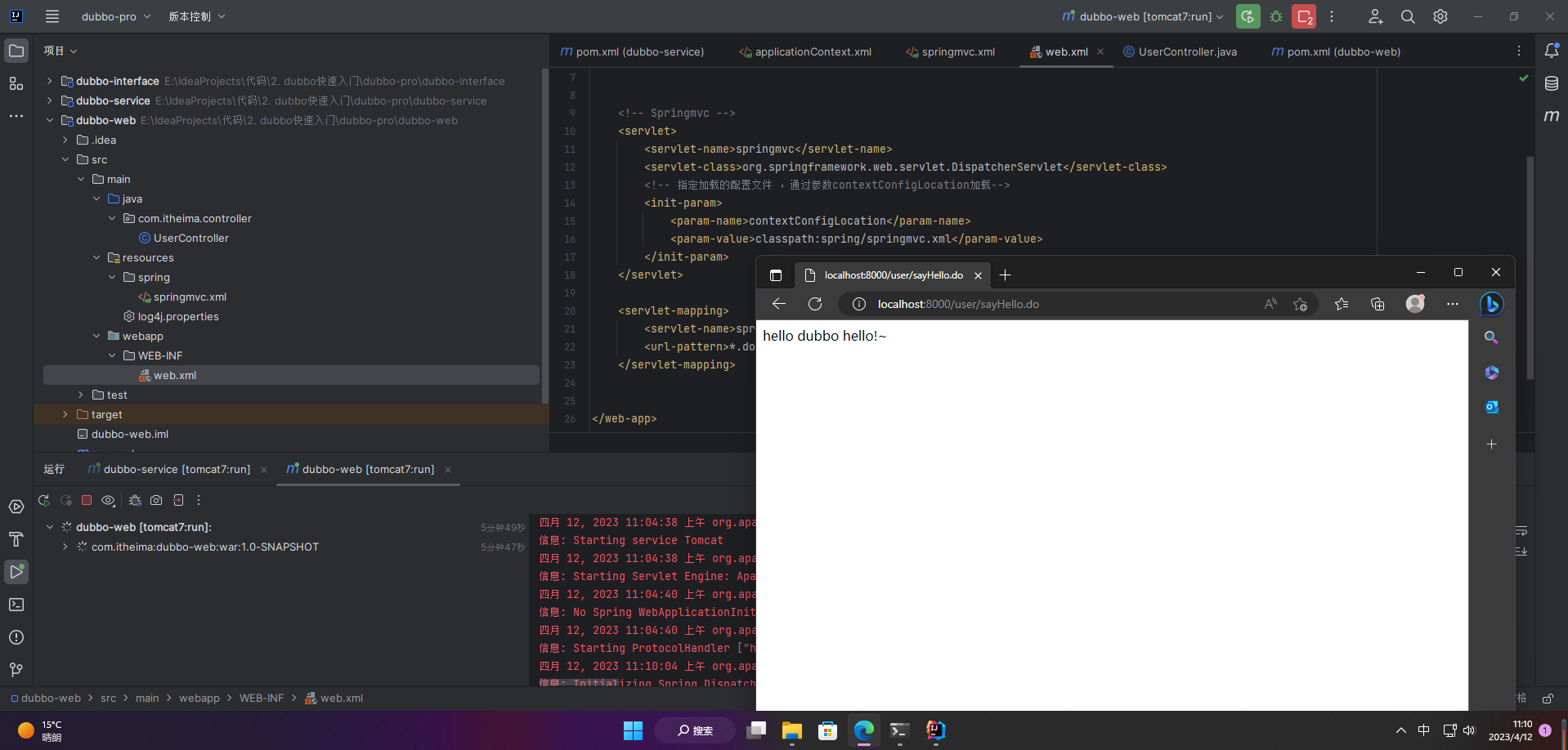 注意:Controller中注入HelloService使用的是Dubbo提供的@Reference注解