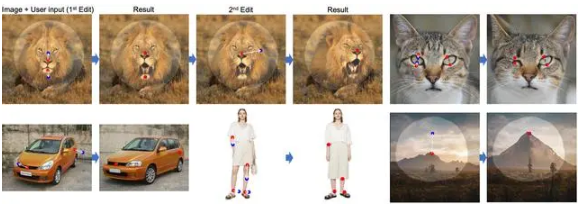 DragGAN是通过生成图像的3D模型来改变图片的,之后该模型可进行编辑。用户可以在不影响图像其余部分的情况下调整图像中物品的位置、形状、情感和布局。DragGAN首先使用卷积神经网络(CNN)从图像中提取特征。然后利用这些特征生成图像的3D表示。接着使用第二个CNN来修改3D模型。该CNN是使用已被人类修改过的图像数据集进行训练的。修改过的照片用于教导CNN如何修改3D模型。一旦训练完成,CNN就可以用于修改任何图片。