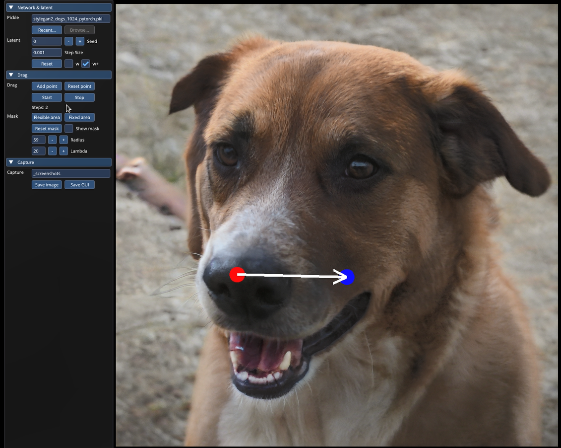 3.放开点后,DragGAN将自动修改图像以匹配您的修改。