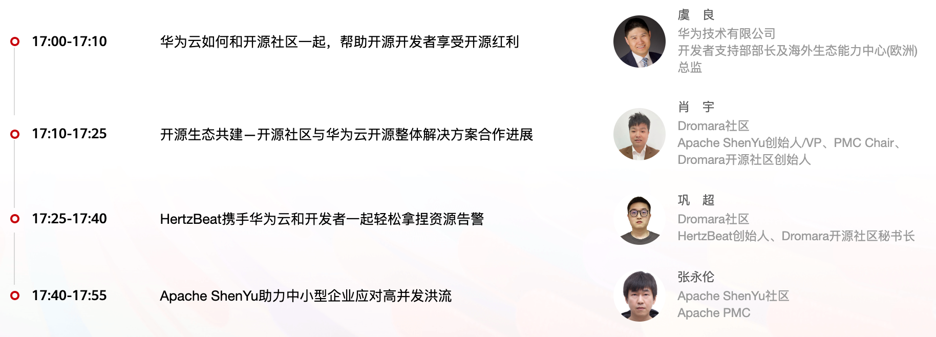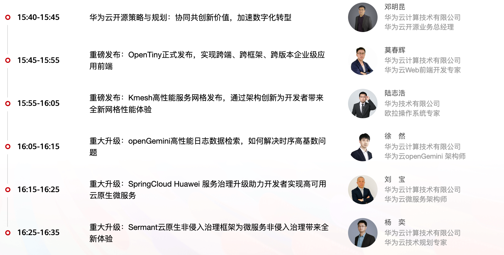大会举办期间,华为云开源分论坛将从华为云自主开源项目发展规划、外部开源社区适配华为云服务、云原生开源套件应用实践3个角度为大家带来精彩分享: