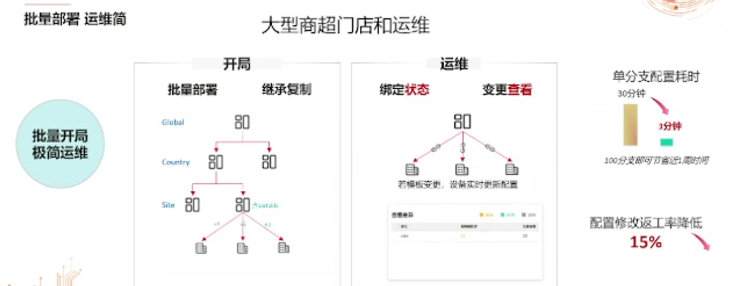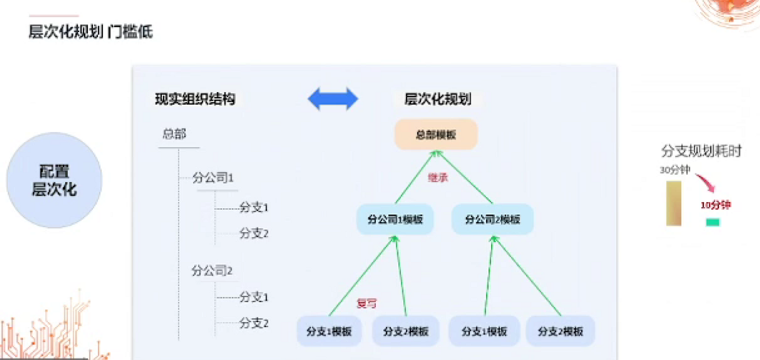 • 层次化规划-门槛低:自上而下规划网络配置结构,一键集成复制,简单灵活。