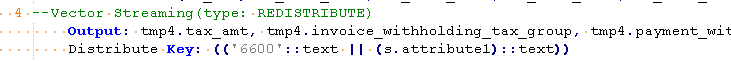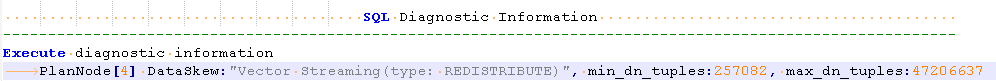 PlanNode[4] DataSkew:"Vector Streaming(type: REDISTRIBUTE)", min_dn_tuples:257082, max_dn_tuples:47206637