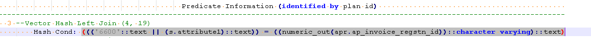 Hash Cond: ((('6600'::text || (s.attribute1)::text)) = ((numeric_out(apr.ap_invoice_regstn_id))::character varying)::text)