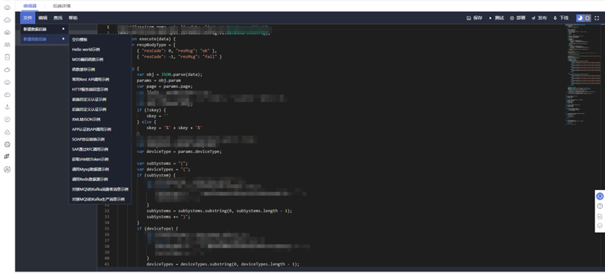 从服务适配需求出发,完成自定义后端和IoT设备集成。自定义后端支持JavaScript语言,使得快速上手实现业务能力成为可能。除了自定义后端,燃气场站现场的众多IoT设备也通过IoT组件实现了统一接入、管控、数据拉通和服务落地。通过自定义后端和IoT设备集成的实现,为客户提供了更加灵活、高效的解决方案。