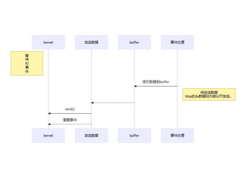 HTTP服务器应答需要打包数据,包括HTTP Header和body。在send之前操作,一般将HTTP header和body分开发送。