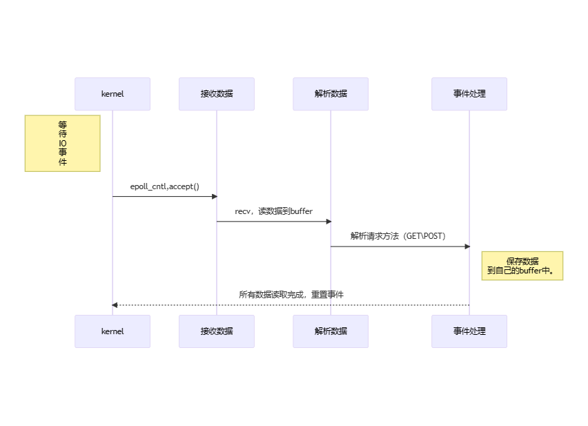 2、事件封装;对未处理的事件放在独立的buffer中;对于http服务器可以优先处理一部分数据。