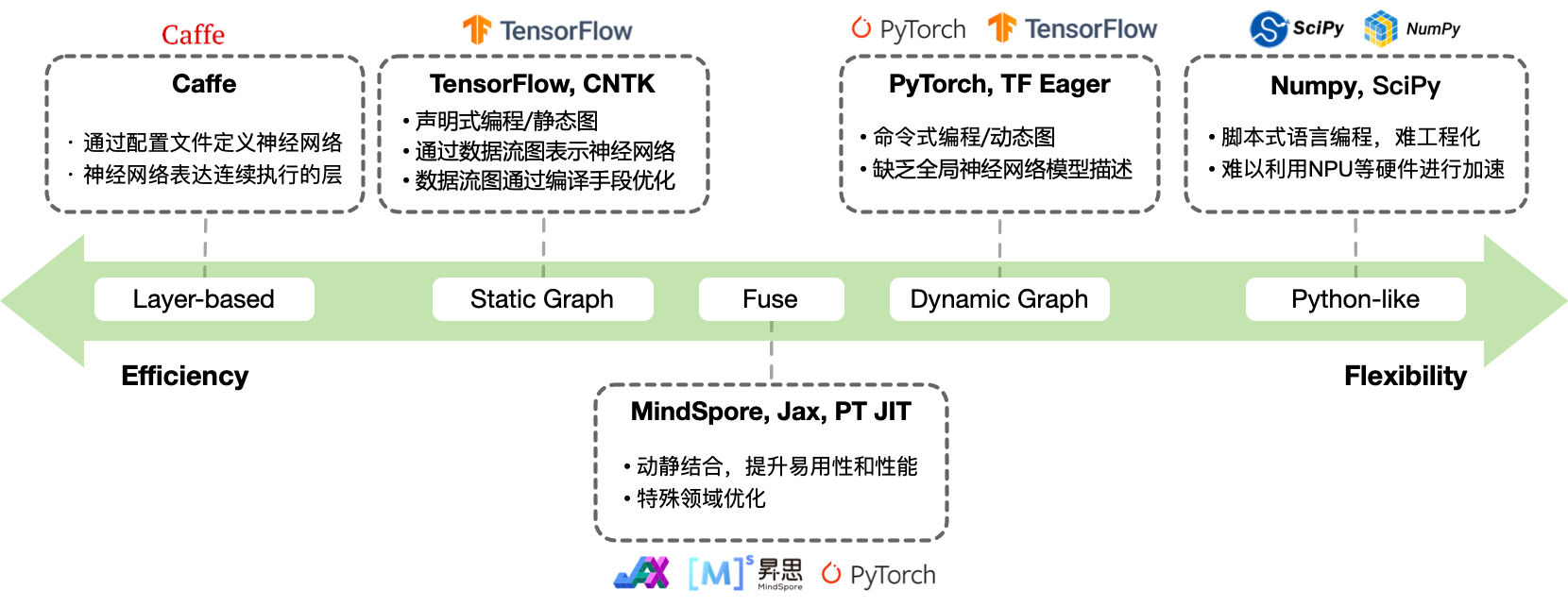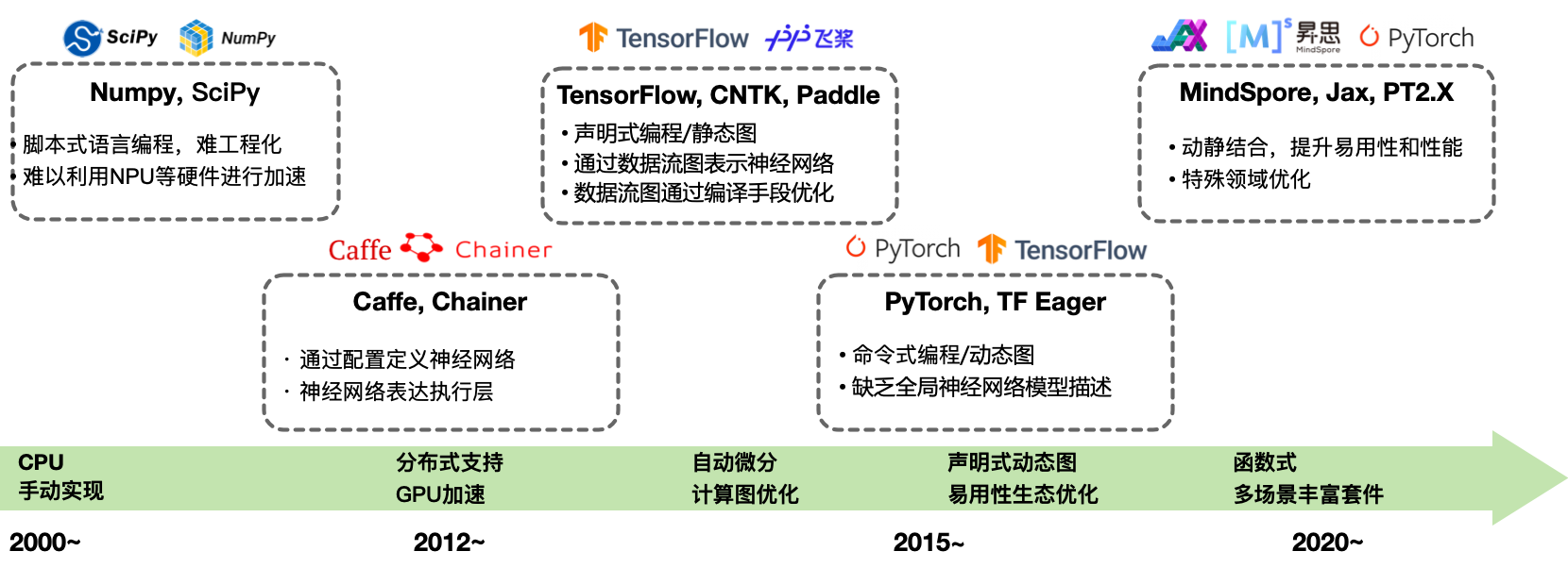 本节内容回顾了AI框架在时间维度和技术维度的发展趋势