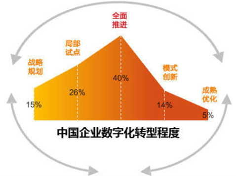 再看8万多家专精特新企业为代表的腰部企业,在过去10年建设了一些单点的业务和财务信息化系统,有一定的信息化基础,但整体数字化水平仍然较低,普遍存在IT力量薄弱、缺乏数字化相关人员组织保障。根据中国工业互联网研究院和前瞻产业研究院的数据分析报告,提供的信息:进入数字化转型深度应用阶段的专精特性企业低于20%,80%以上专精特新企业的数字化升级转型程度尚处于“探索起步”和“践行实施”阶段。