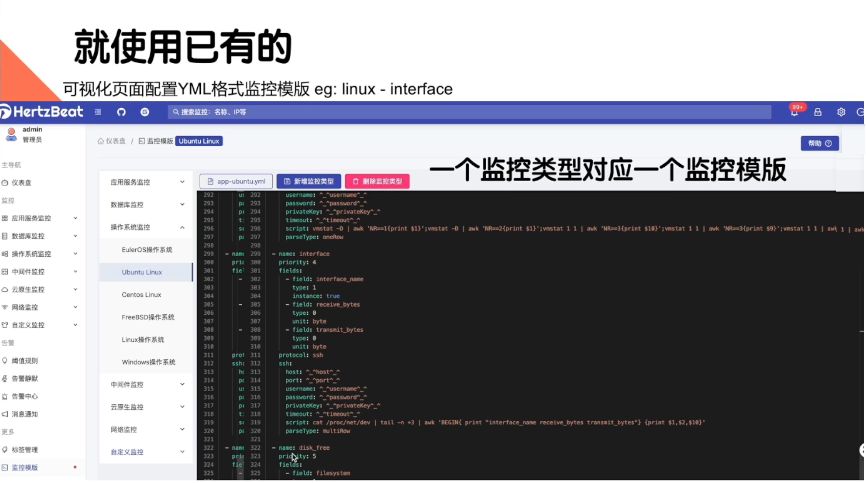 HertzBeat的一个设计视角就是,尽量不做自带agent或和agent强相关的。我们可以使用生态里面的exporter和agent,使用共有协议。抽象它们的共同点,做成一个监控模板。