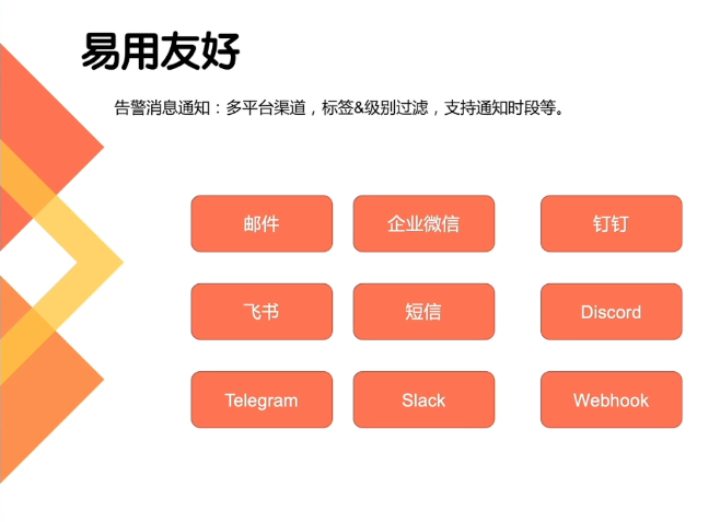 告警消息通知:多平台渠道,标签&级别过滤,支持通知时段等