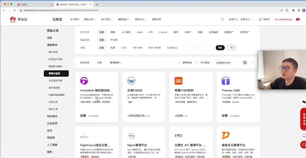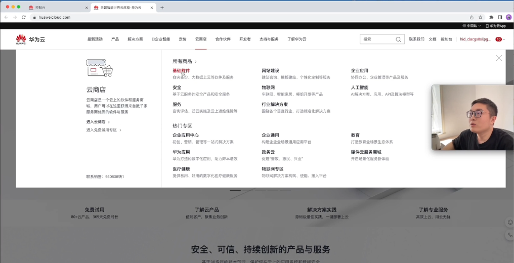 首先打开华为云官网,然后点击“云商店”,点击“基础软件”