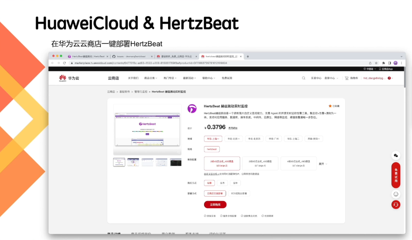 可以通过华为云商店,一键部署 HertzBeat。