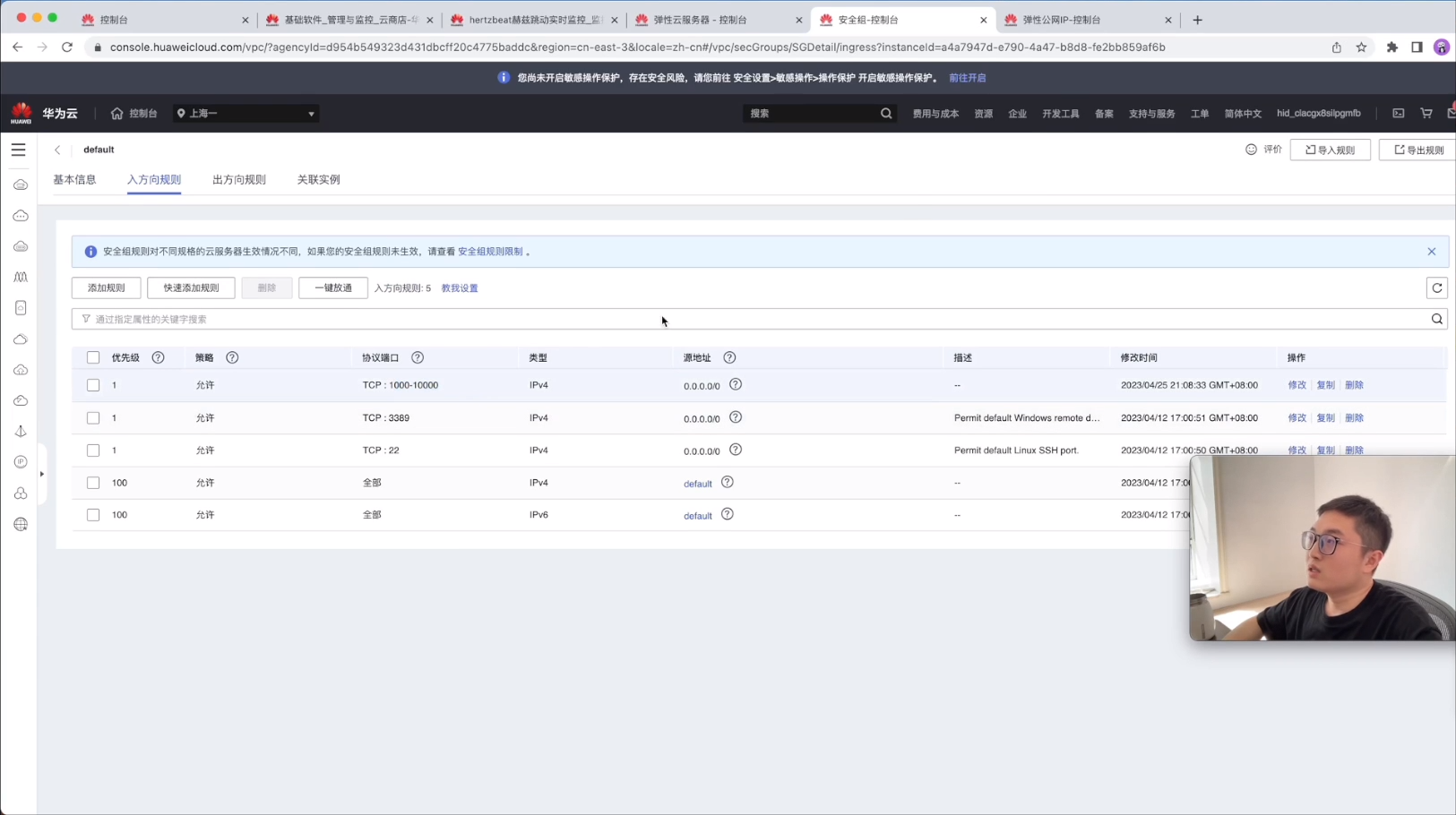 HertzBean 的启动端口是1157,因此在安全组这里,要把1157这个端口开放出来