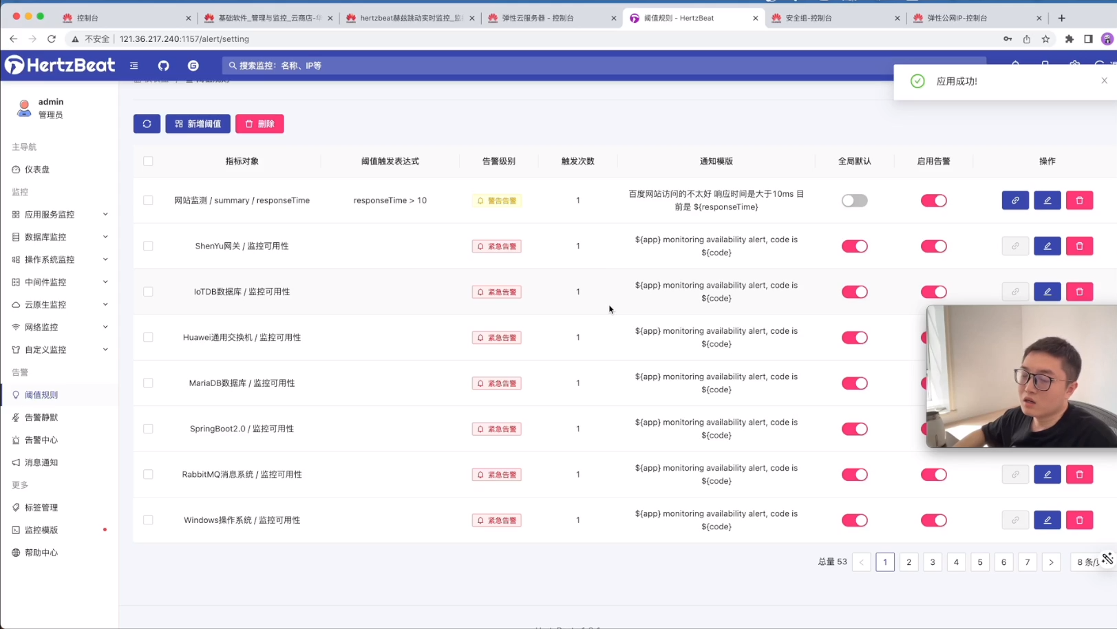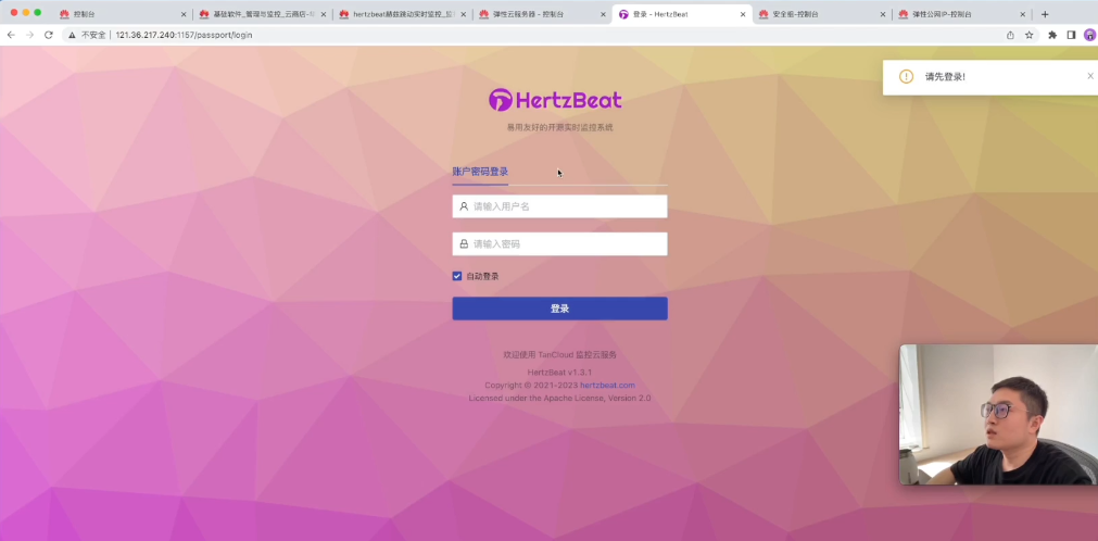 然后在公网IP就可以直接访问HertzBeat 了。它的账号/密码就是 admin/hertzbeat