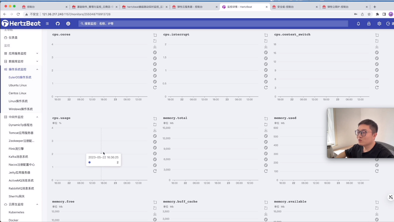 操作系统的监控仪表盘就比较多了,有cpu、内存、磁盘、网口等