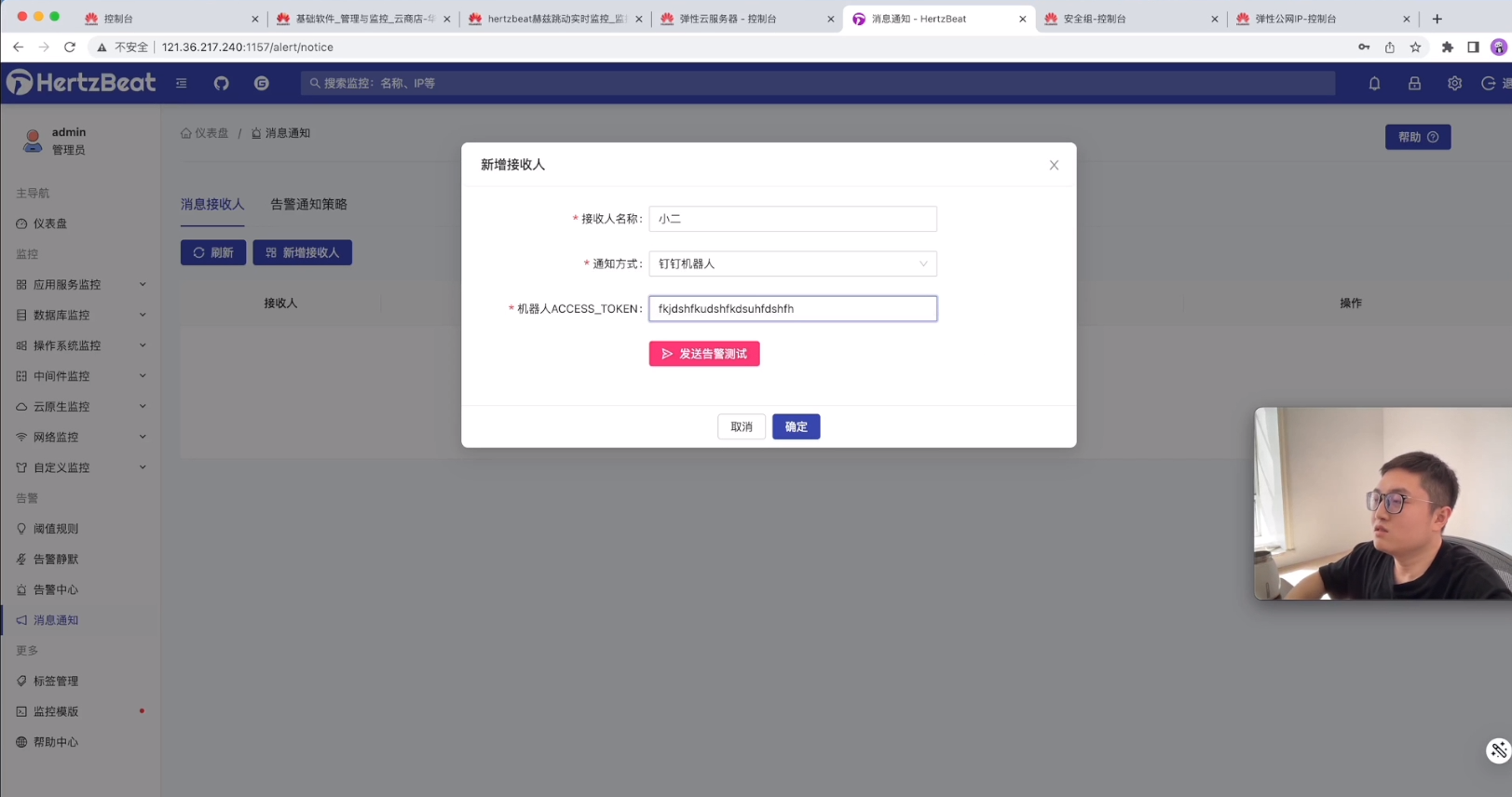 这里还可以新增接收者,需要配置正确的token