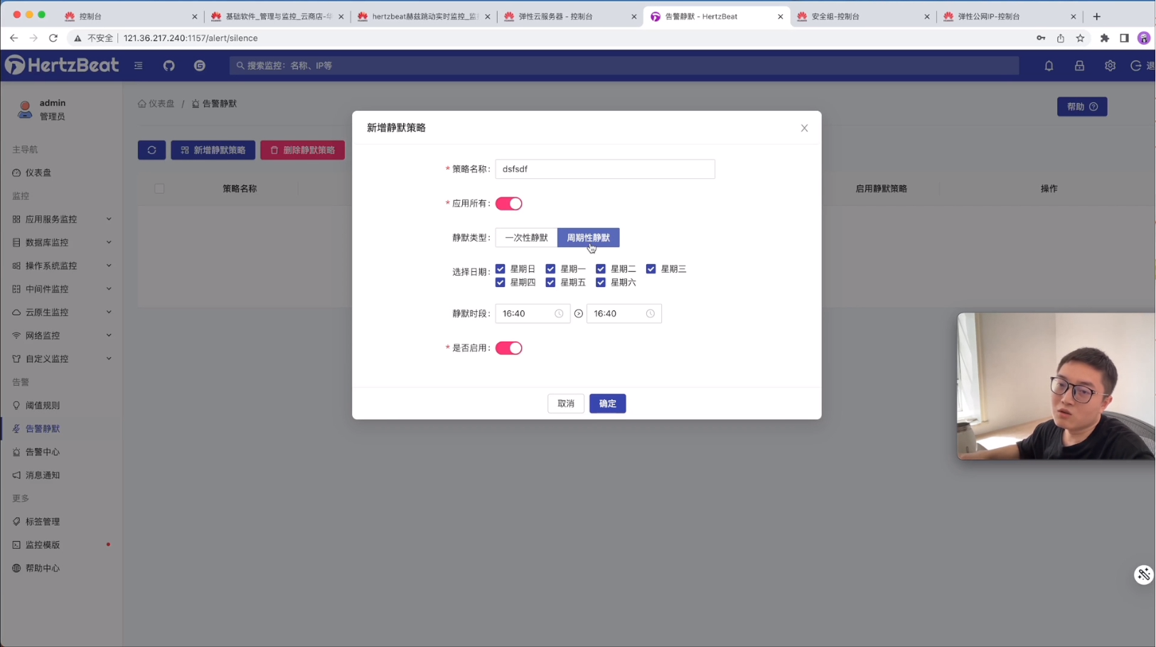 这里可以配置告警静默,比如在每周的什么时候,是处于维护状态,这时候不需要发送告警。或者夜间领导处于休息状态,也不要打扰领导