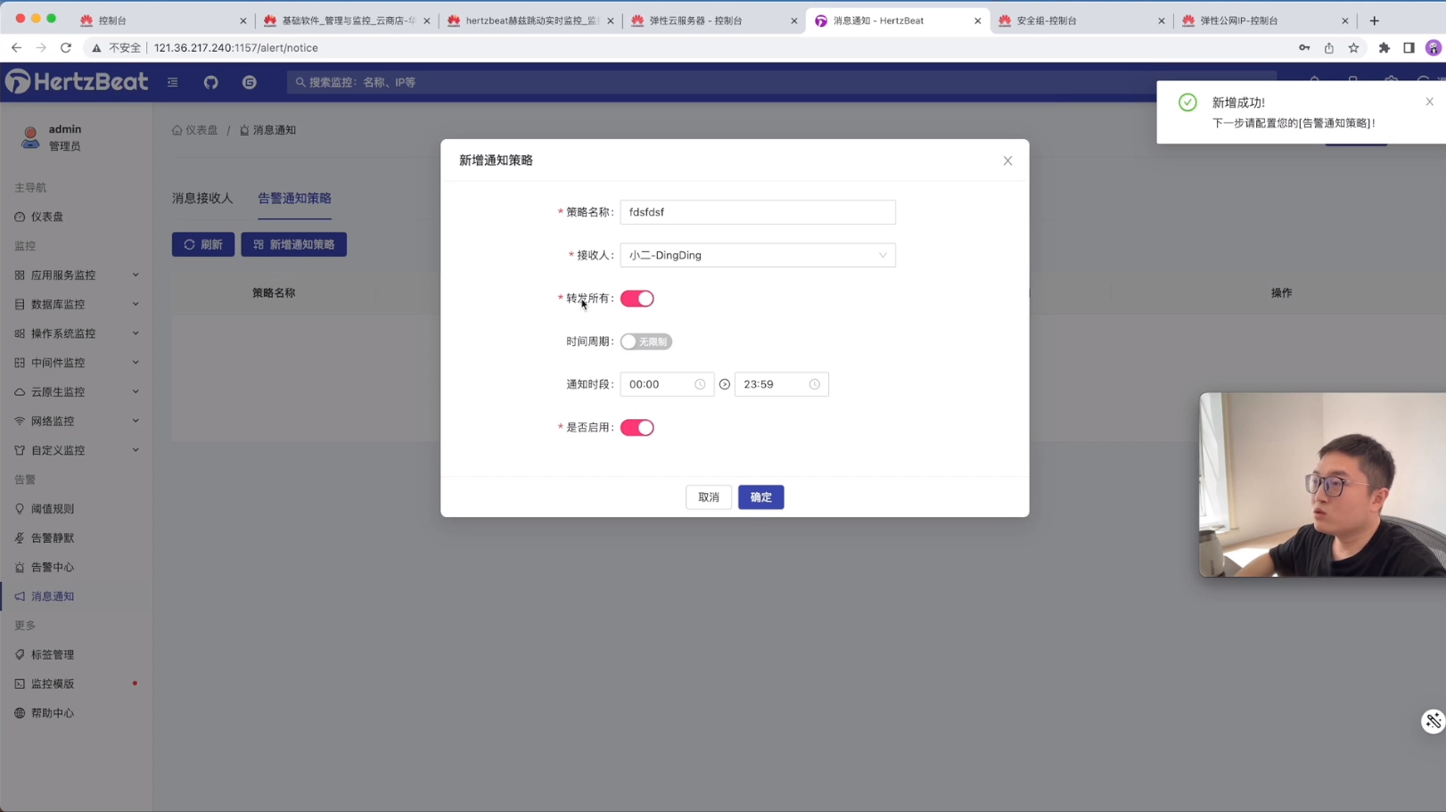 然后需要配置通知策略,哪些通知转发给哪些人