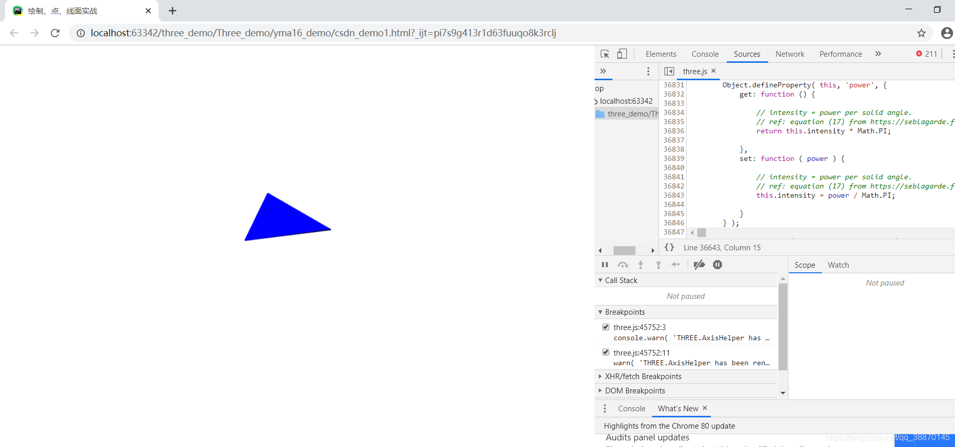 var materail1 = new THREE.LineBasicMaterial({color:0x0000FF});//加上纯色