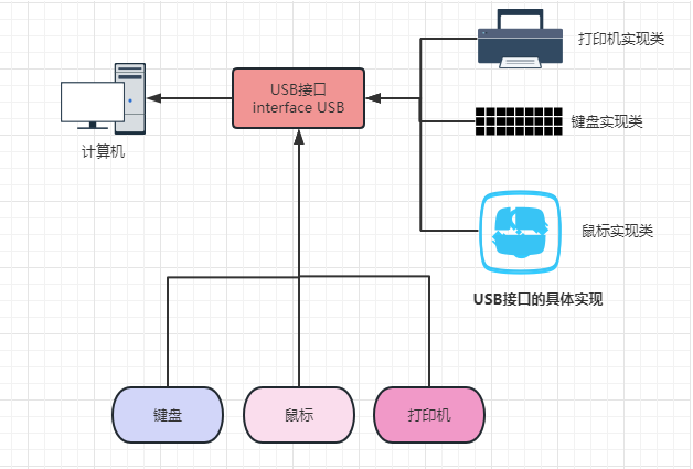 定义一个USB接口,上一节.我们详细讲解过接口的定义和使用以及相关概念,这里就不再赘述.