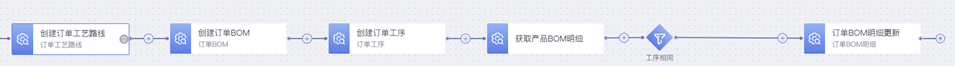 自动创建订单工艺路线和订单BOM的逻辑动作配置步骤如下,详细配置示例不再详细展开说明: