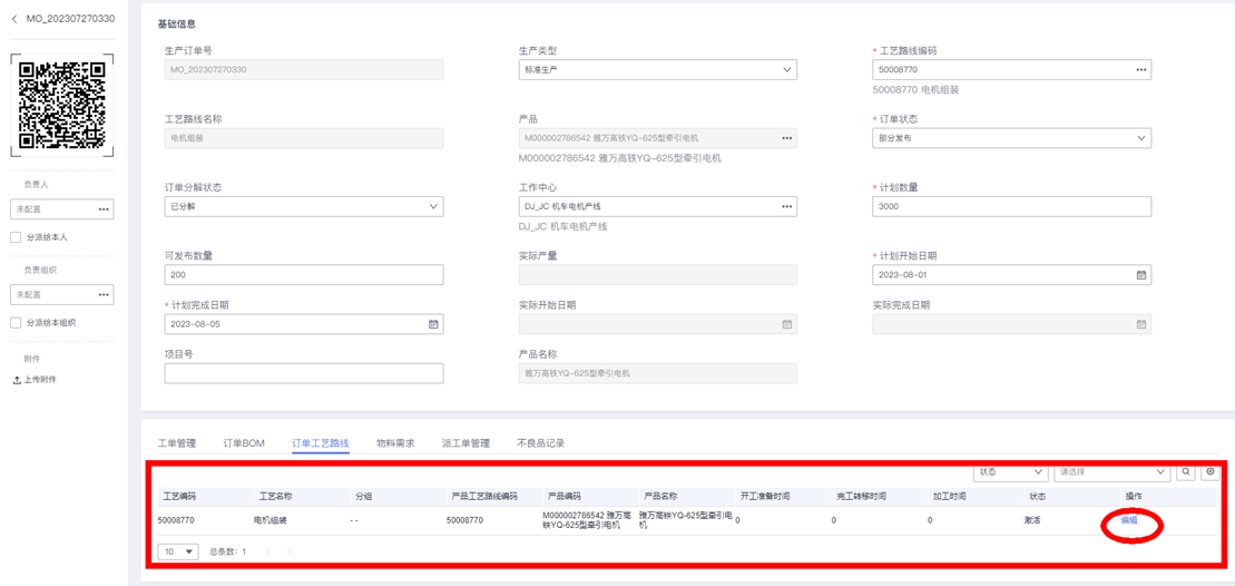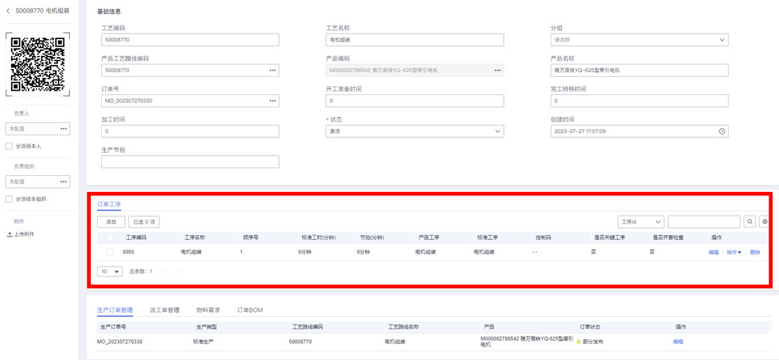 - 订单工艺路线: