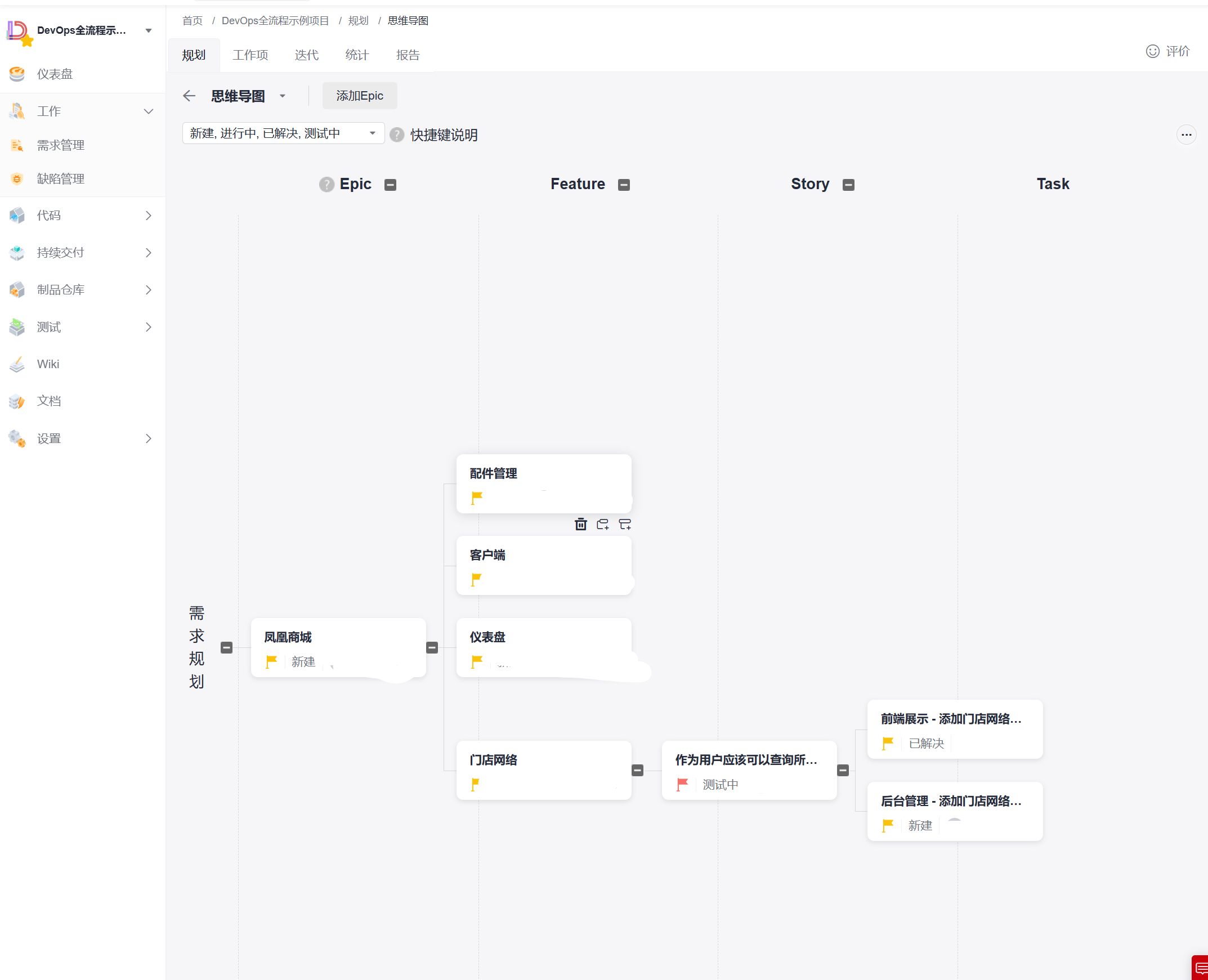 下图为其中第三层级的思维导图点击后的详情,可以查看到其所处的状态以及优先级等信息。