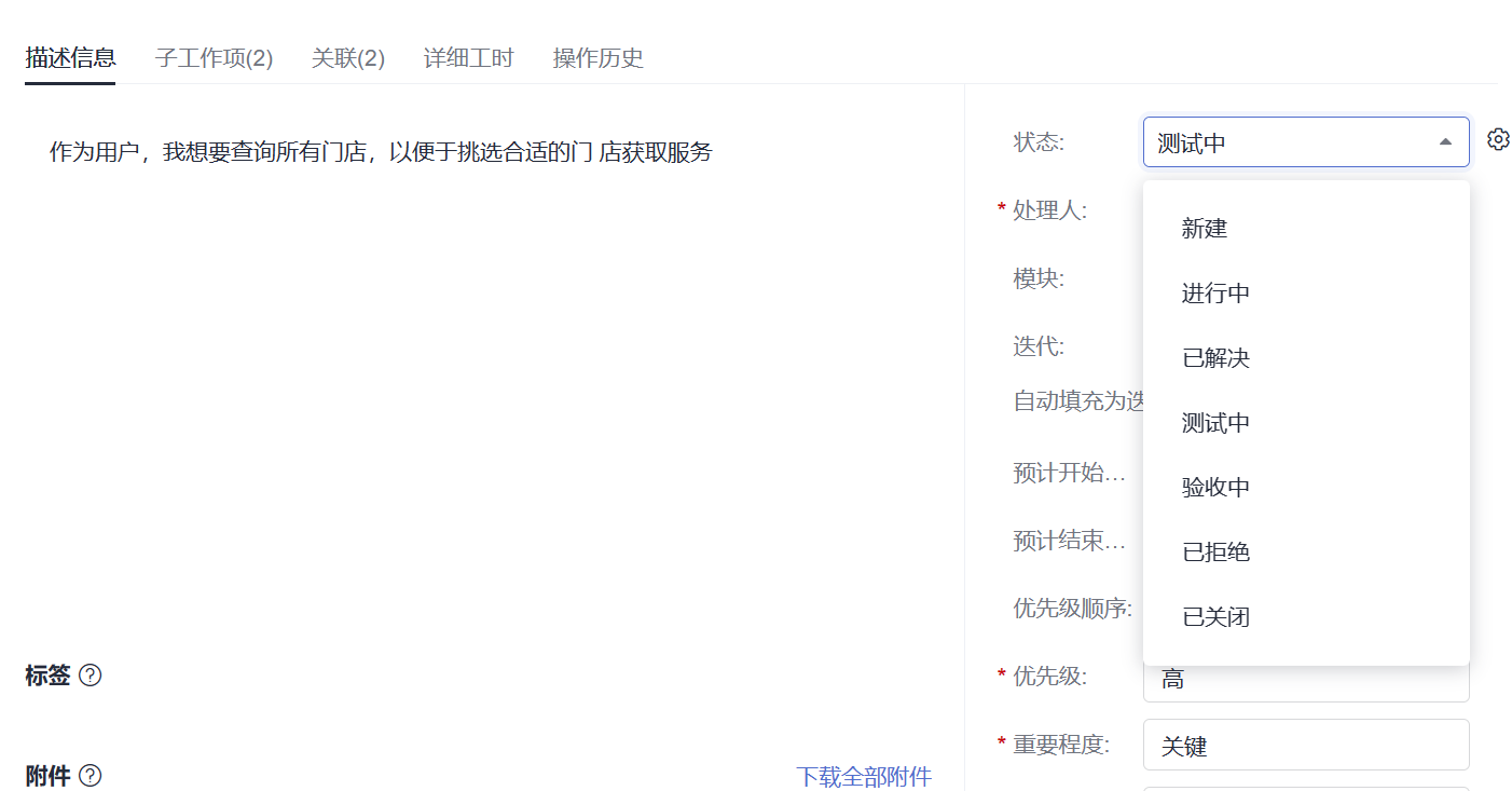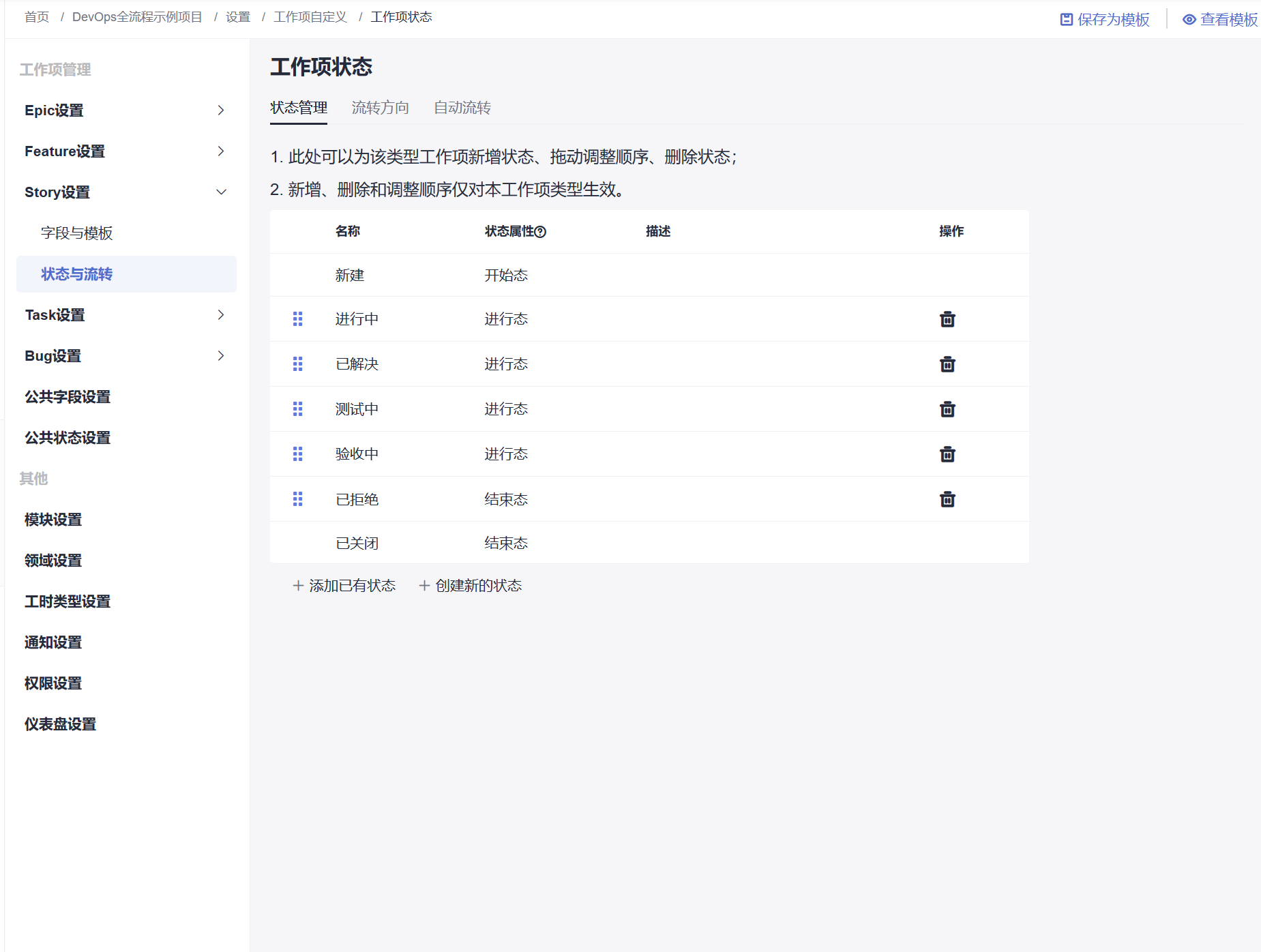 通过进行状态的添加,可以将工作流程分为不同的状态,在进行任务状态的更新时,可通过多样性的名称准确的描述工作状态。