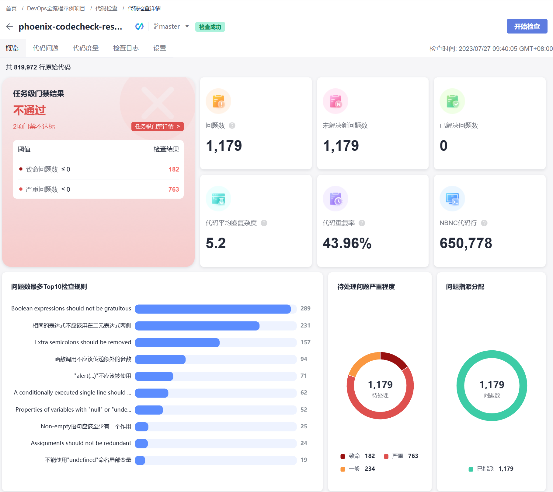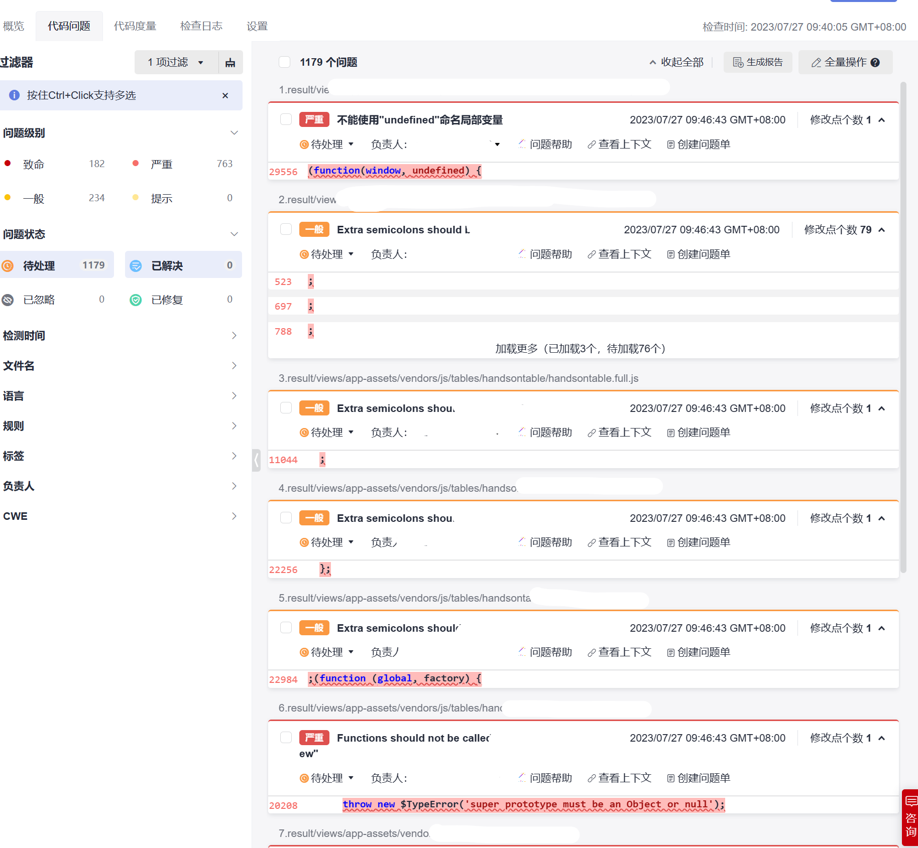通过代码检查功能,能够将代码中的问题转化为图标样的展示,提高了解决问题时工作人员对于问题的解决效率,查看此图可以很好的观察到代码的整体问题,并可通过此表格进行代码的优化