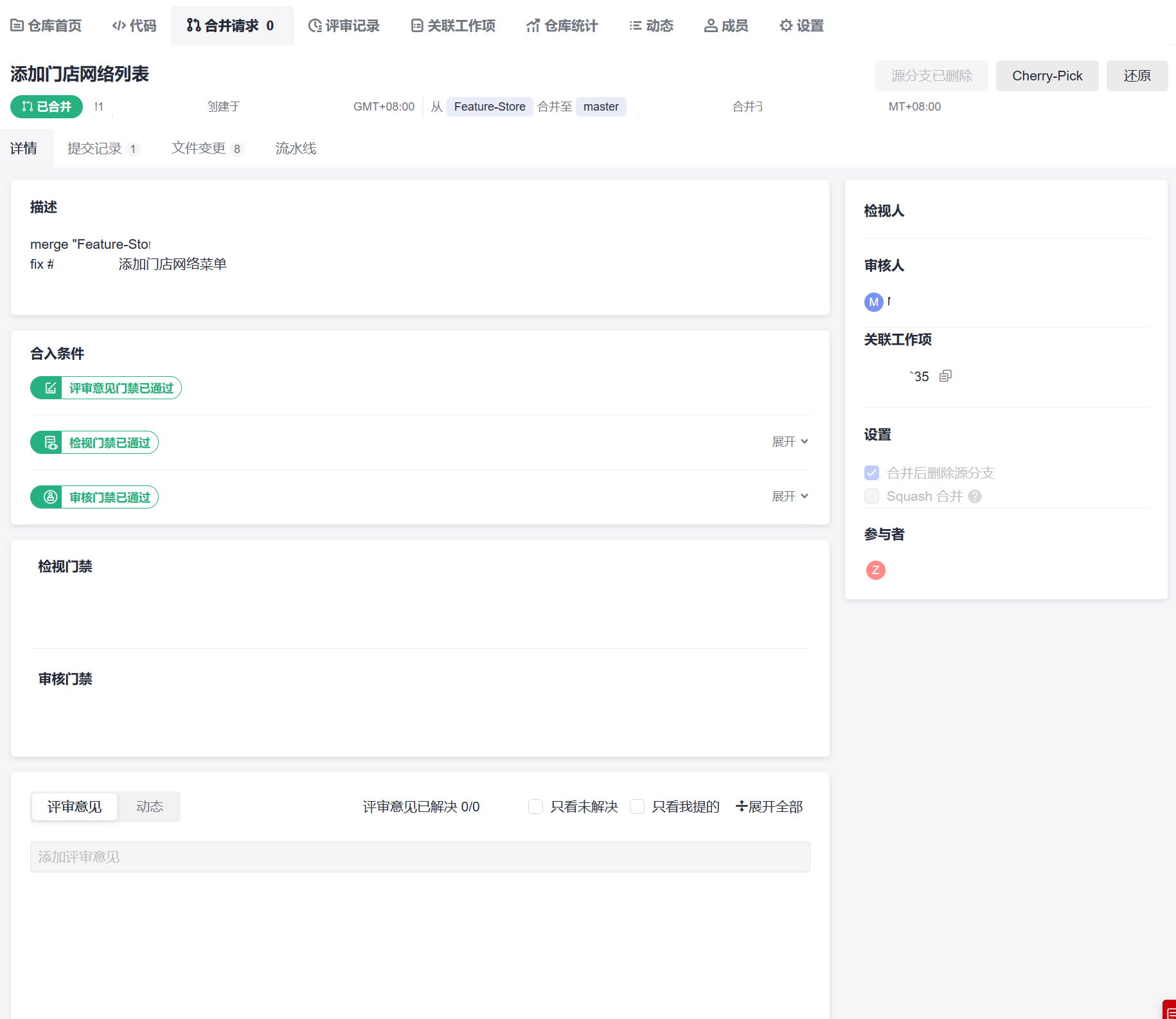 其中丰富的合并请求条件能够快捷的进行合并分支的筛选