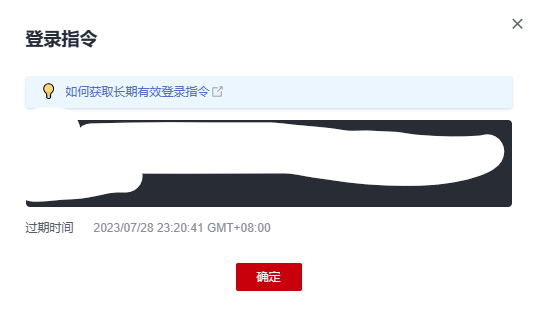 下图为点击登录指令之后的弹窗,若需要长期的登陆指令(可点击蓝色小字进行长期登录指令获取的查看)