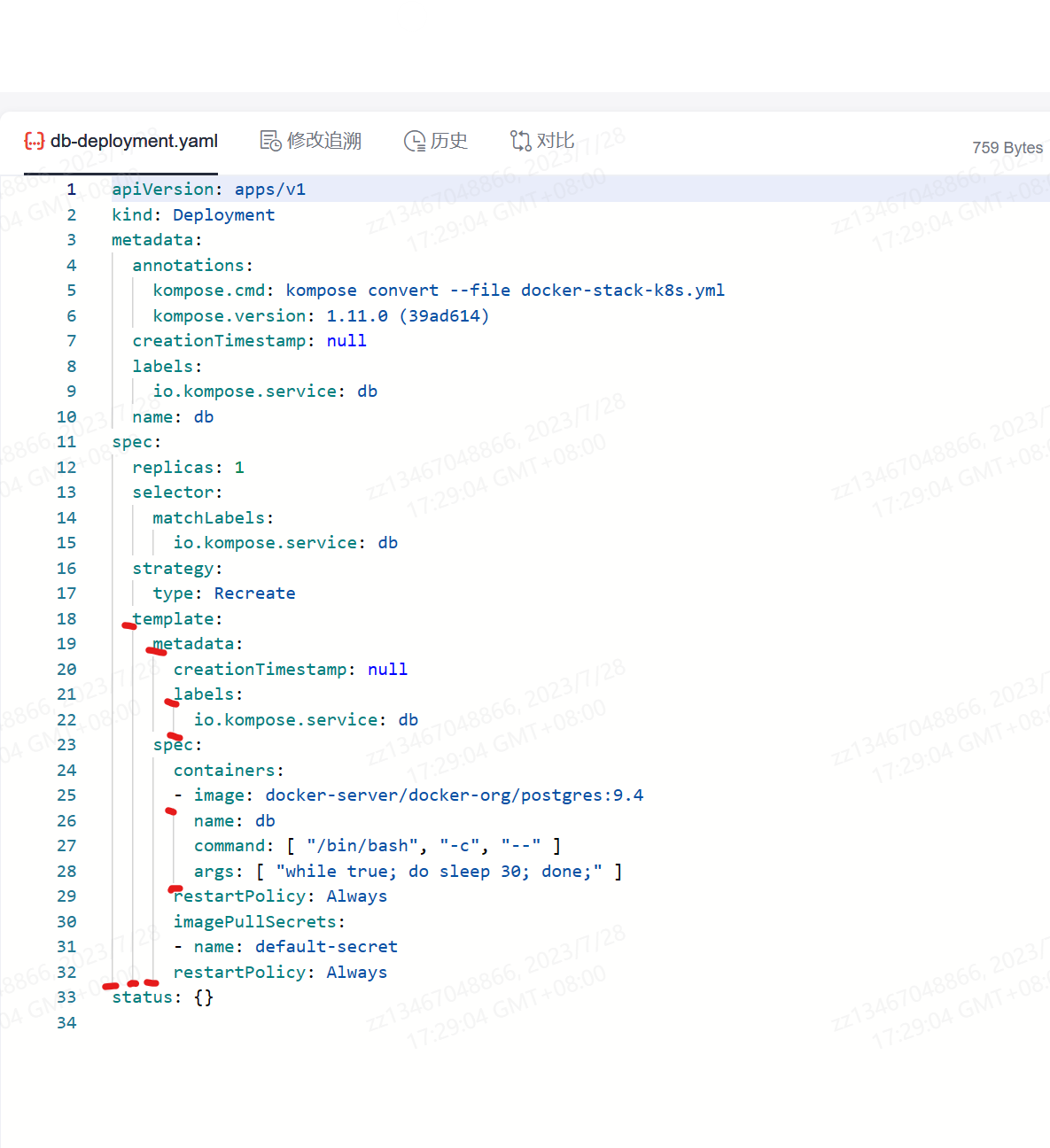 在进行 .yaml 文件修改时,务必务必要注意的是 代码的对齐 ,若没有进行对齐,编辑时仿佛没有问题的存在,但是在之后的部署中将会报错导致无法进行部署,此处问题的隐藏性极强。