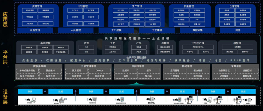 - MES/MOM应用平台:解决提供覆盖制造运营全业务流程的共性模块,从而最大限度实现重用可扩展,满足共性需求,并做适度的“模型化”抽象封装,满足跨组织协同对数据标准一致性的要求,同时屏蔽业务内部细节的复杂性、保证支撑业务功能目标达成的能力深度、避免复杂场景下的演进瓶颈。
