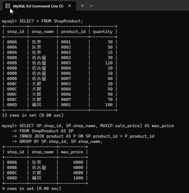 | 0004 | 菜刀 | 3000 | 000B | 名古屋 | 20 |