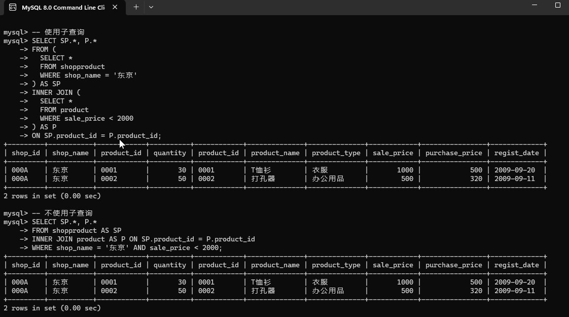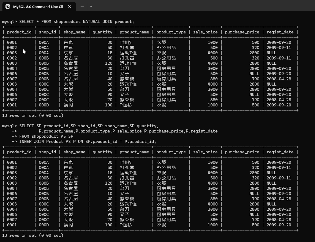 | 0001 | T恤衫 | 1000 | 000A | 东京 | 30 |
