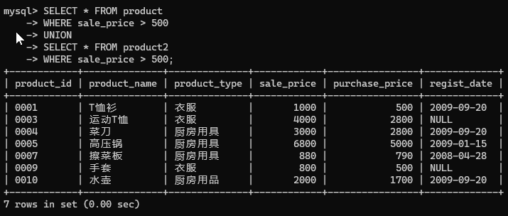-- 使用 UNION