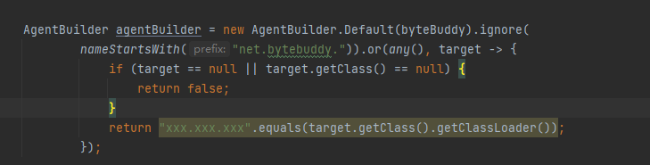方案二:ByteBuddy也可以通过定义匹配器Ignored的方式取消对于某些类进行增强前的类型扫描。Ignored支持对于指定类加载器加载的类进行匹配。因此在使用多字节码框架时,可以通过配置需要取消扫描的类的类加载器信息,减少进行增强前需要扫描的类,进而减少服务启动时间。