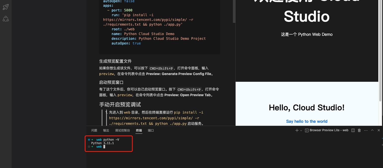 随着云计算技术的不断发展,云端工作站越来越受大家的欢迎。而Cloud Studio就是其中的一个佼佼者。**Cloud Studio 是基于浏览器的在线集成式开发环境(IDE),为开发者提供了一个永不间断的云端工作站。用户在使用 Cloud Studio 时无需安装,随时随地打开浏览器就能在线编程。**得益于以下优点,它成为了大部分程序猿们的首选开发环境。