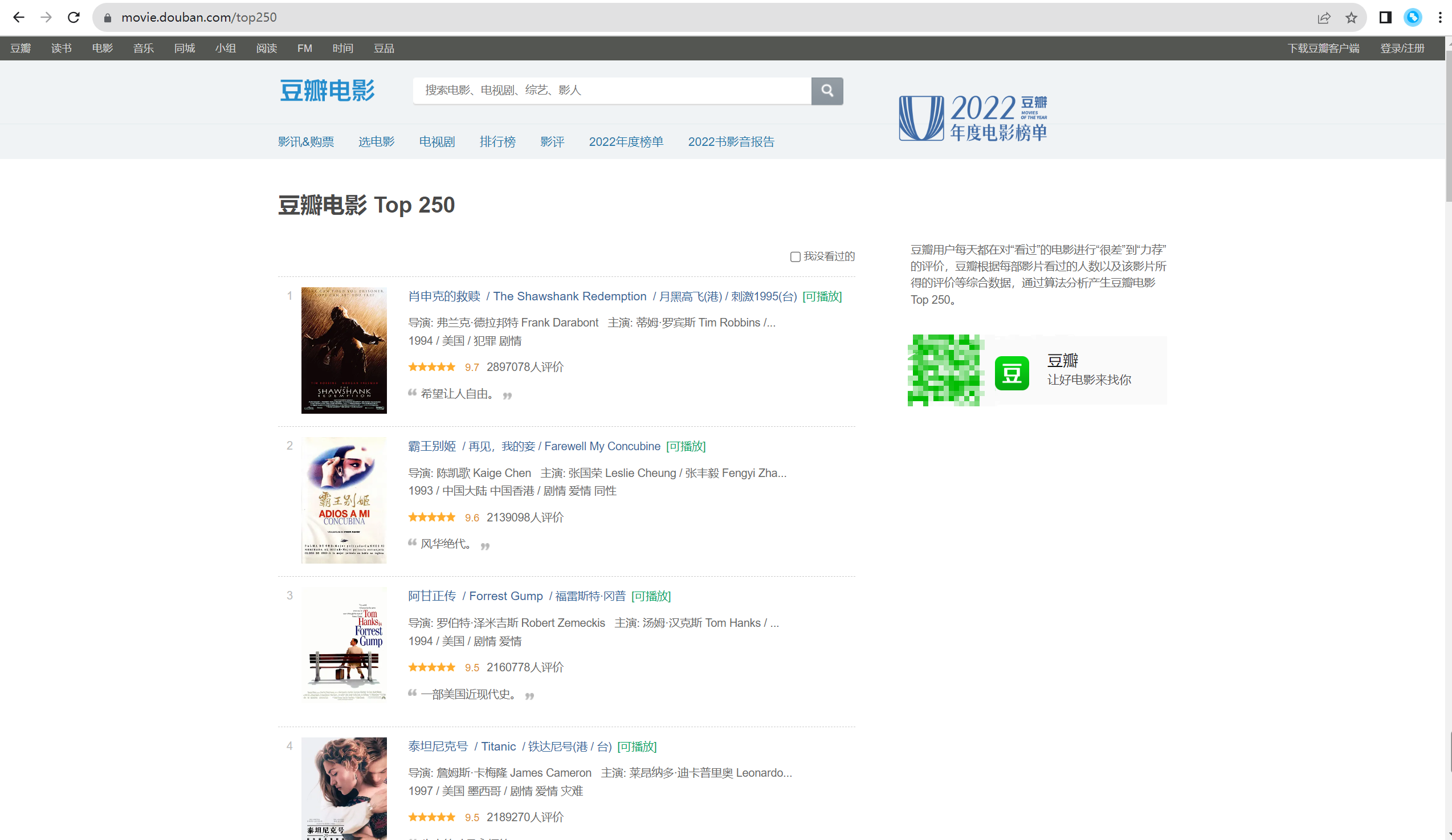 经过我们观察目标网站,发现一页就是25个电影信息,这里刚刚好,而且电影相关信息都获取到了!!!