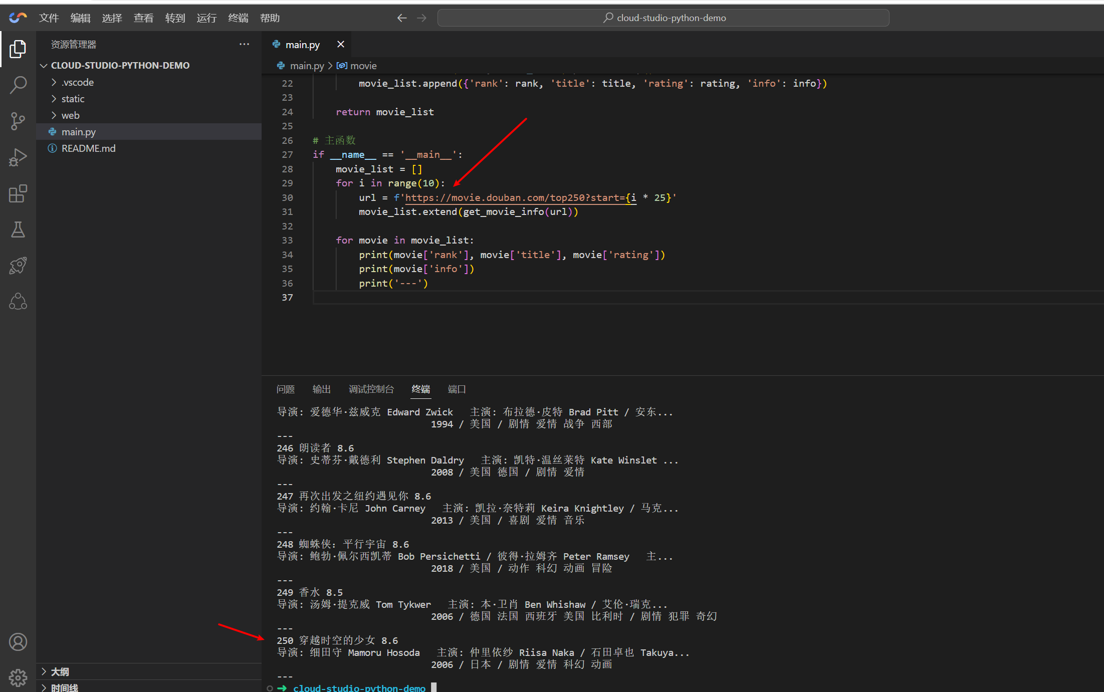 下面就请跟随我的脚步,通过念咒编程做一个Python爬虫——【爬取豆瓣TOP250所有电影信息】