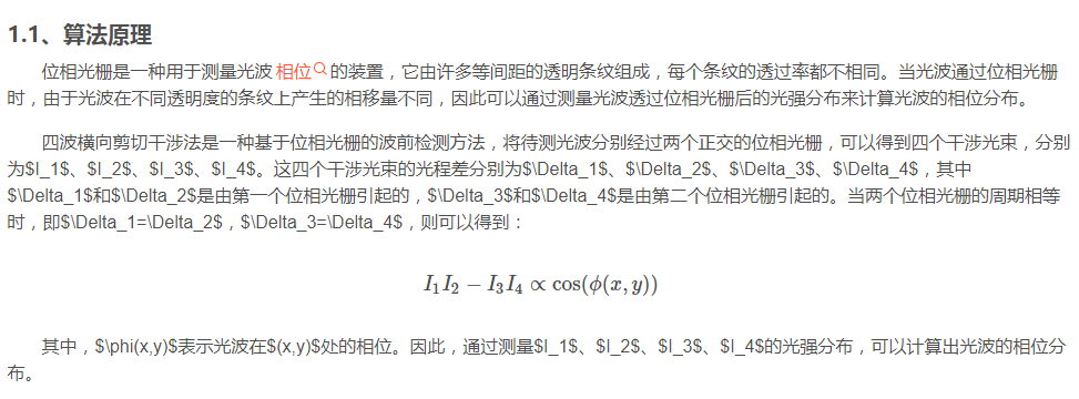 波前检测技术是现代光学中的重要技术之一,可以用于衡量光学系统的成像质量和研究光学系统的异常现象。随着现代光学技术的不断发展,波前检测技术也在不断地发展和完善。其中,基于位相光栅的四波横向剪切干涉法波前检测算法是一种常用的波前检测算法,本文将从专业角度详细介绍该算法的实现步骤和数学公式。
