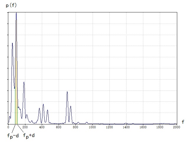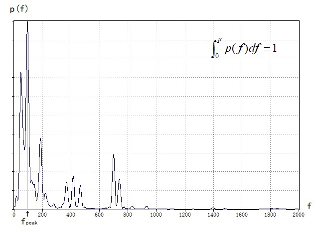 如下图所示功率谱曲线,横轴代表频率,纵轴代表归一化功率,其中最大值对应的频率即峰值频率fp=fpeak。