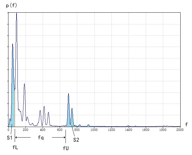频率fL以下的曲线面积S1,频率fU以上的曲线面积S2,且S1=S2=0.25,则四分位频率宽度为fq=fU-fL。
