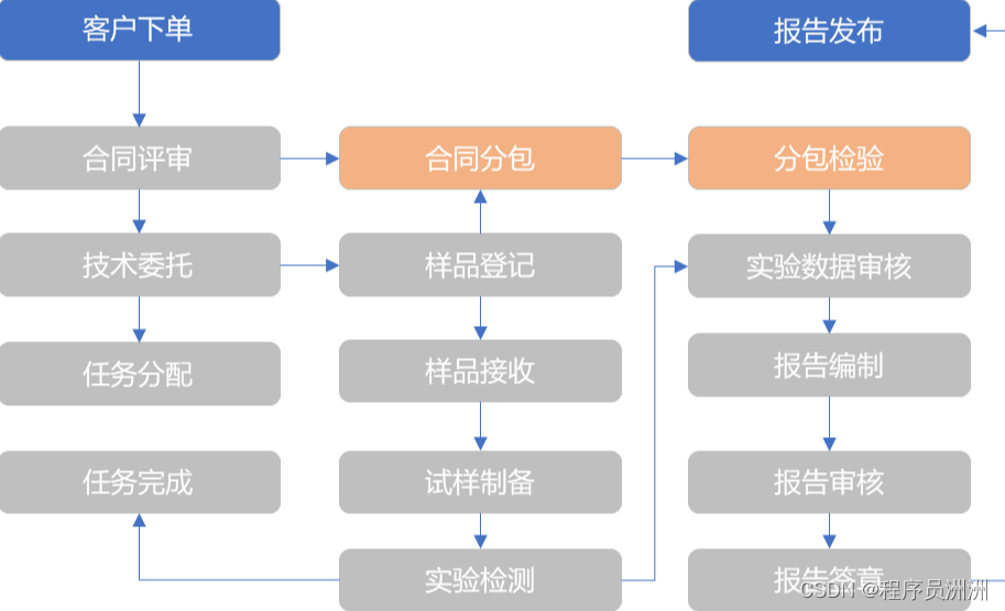 构建实验室样品检测系统,需要完成从下单、任务分配、样品登记、接收、试样制备、实验检测等全过程信息管理,同时包含合同管理、报告编制和签章管理等功能。