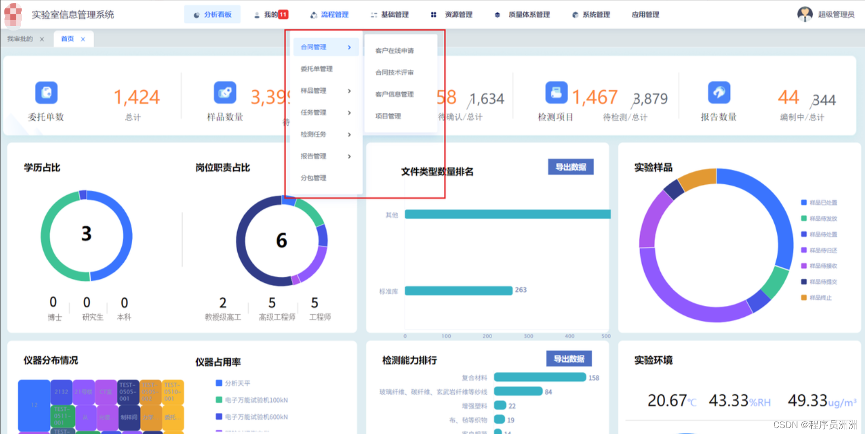 实验室管理中涉及到设备数据接入,检测人员填报数据,审批流转流转数据,数据流向是复杂且难以管理的。