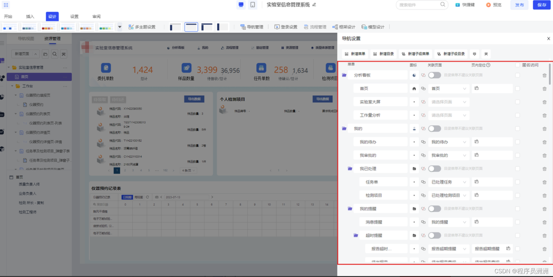 虽然实验室工作台比较复杂,但是可以通过smardaten管理导航菜单和页面的关系绑定:支持多层级嵌套,多种导航布局展示。