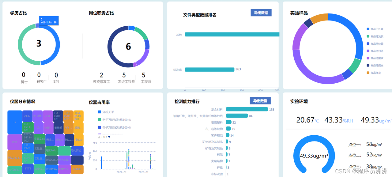 面对实验室团队协作中多角色,不同角色关注的数据维度也是各不一样,统一看板多视图的重要性不言而喻。管理层关注人员和能力,执行层关注业务分布和环境信息。